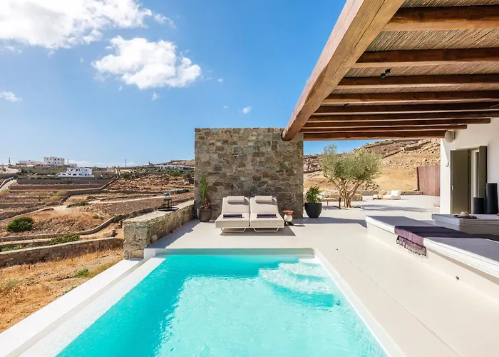 De Oude Haven van Mykonos is hiervandaan en het Klein Venetië ligt binnen 25 minuten te voet van deze villa. De 5-badkamer villa ligt op 2 km van culturele bezienswaardigheden zoals het Maritiem Museum van Mykonos.